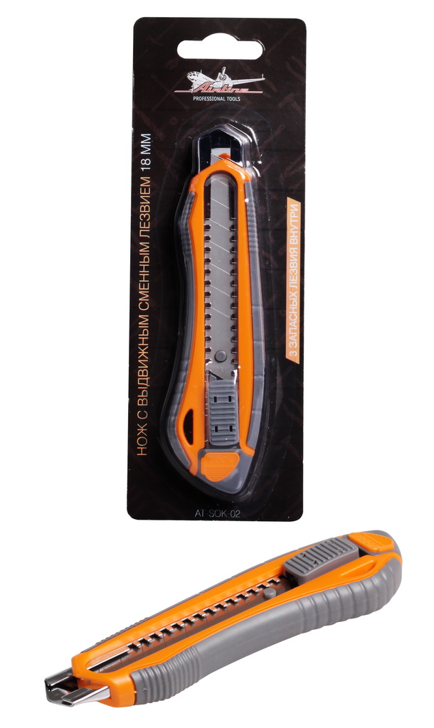 Нож с выдвижным сменным лезвием 18мм (AT-SOK-02) |